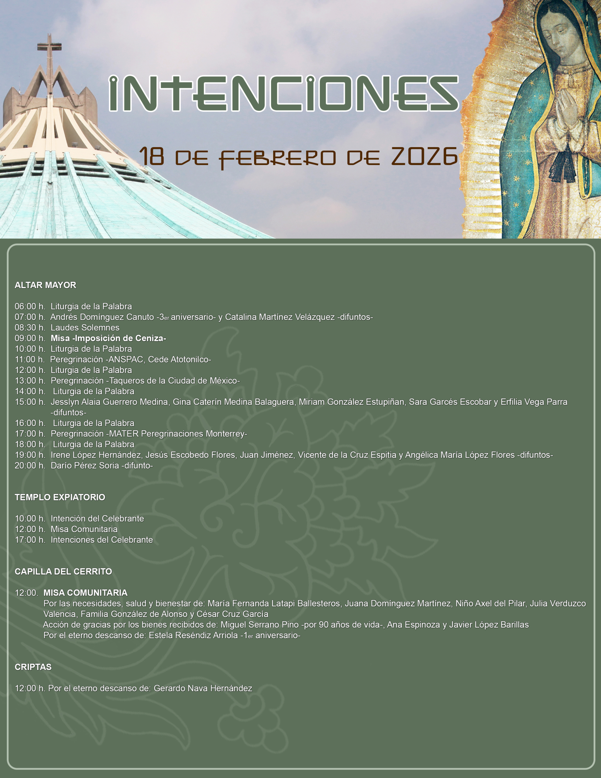 • Mención diaria de un difunto por 9 días |